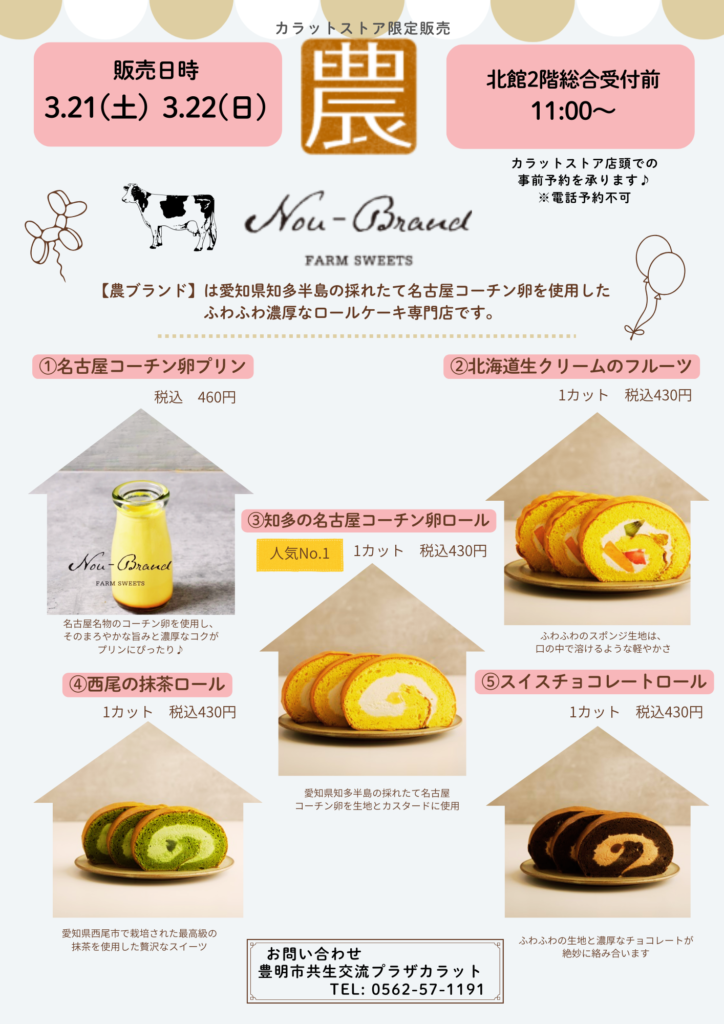今回は「農ブランド」さんのスイーツを販売いたします。