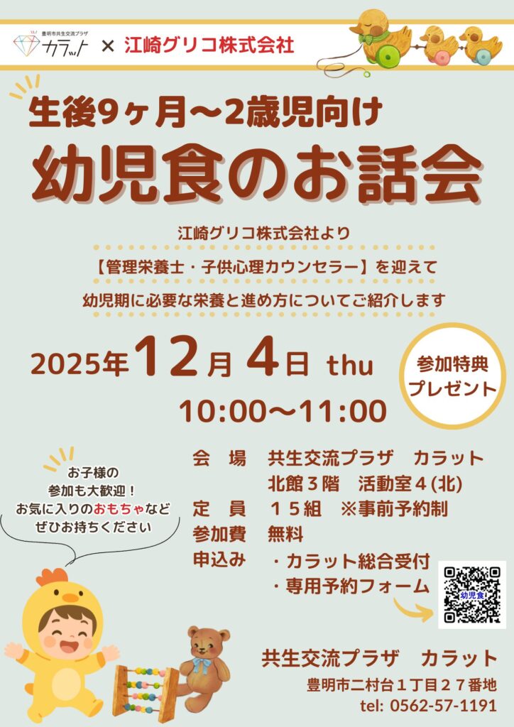 【12月4日(木)開催】生後9カ月~2歳児向け 幼児食のお話会