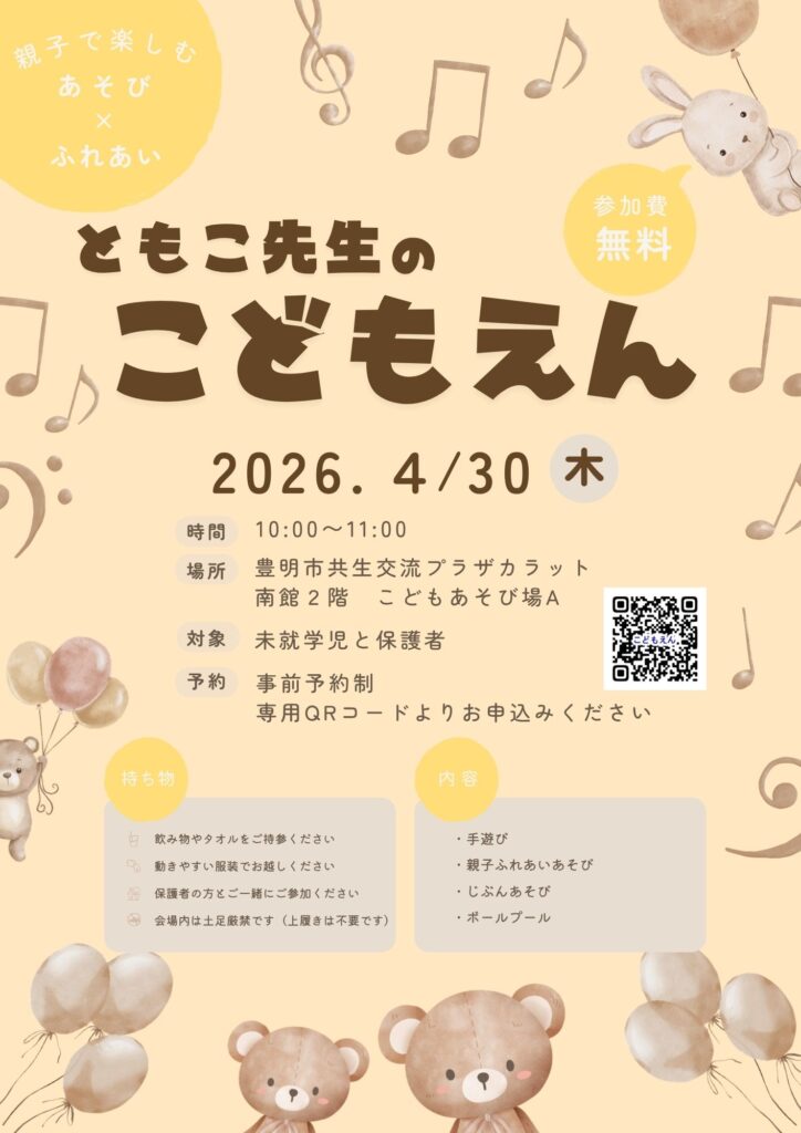 【4月30日(木)開催】ともこ先生のこどもえん